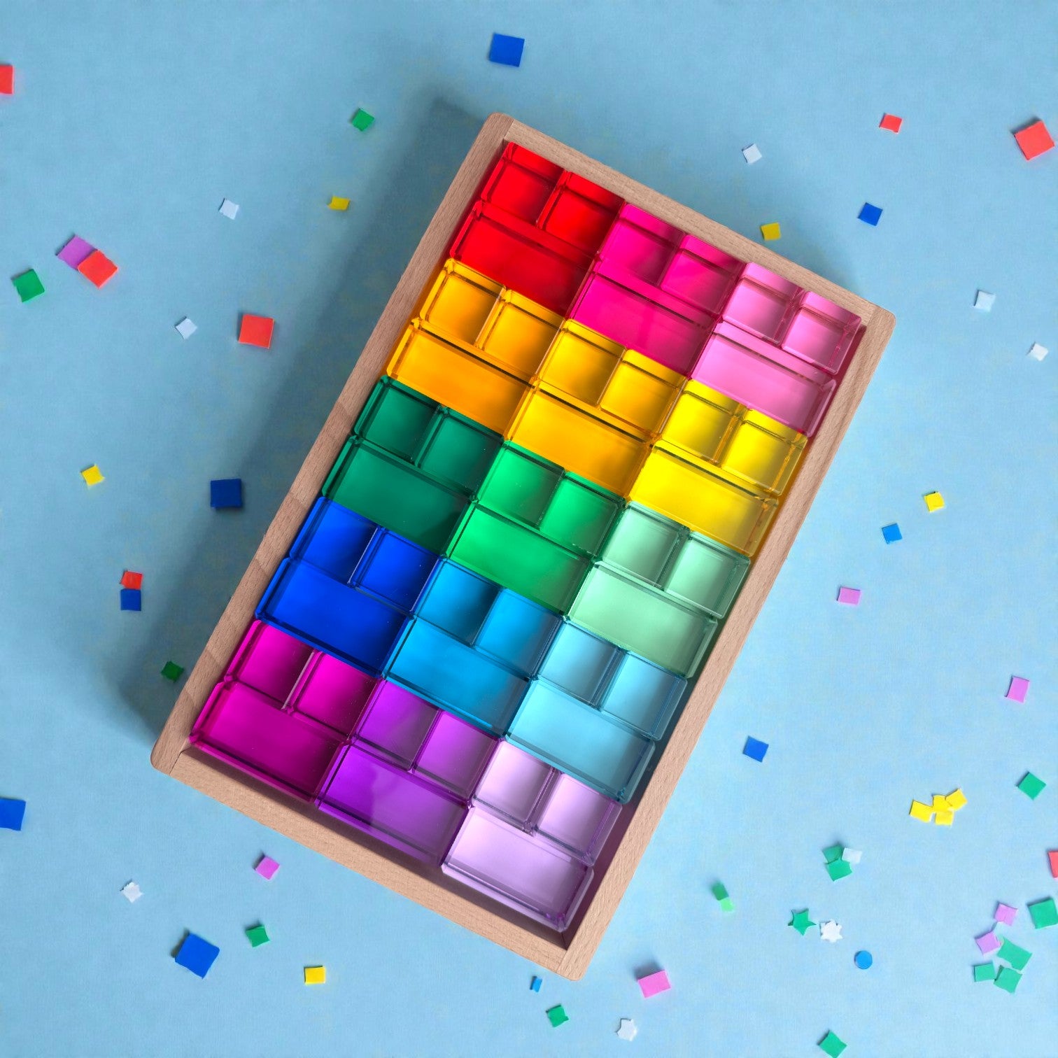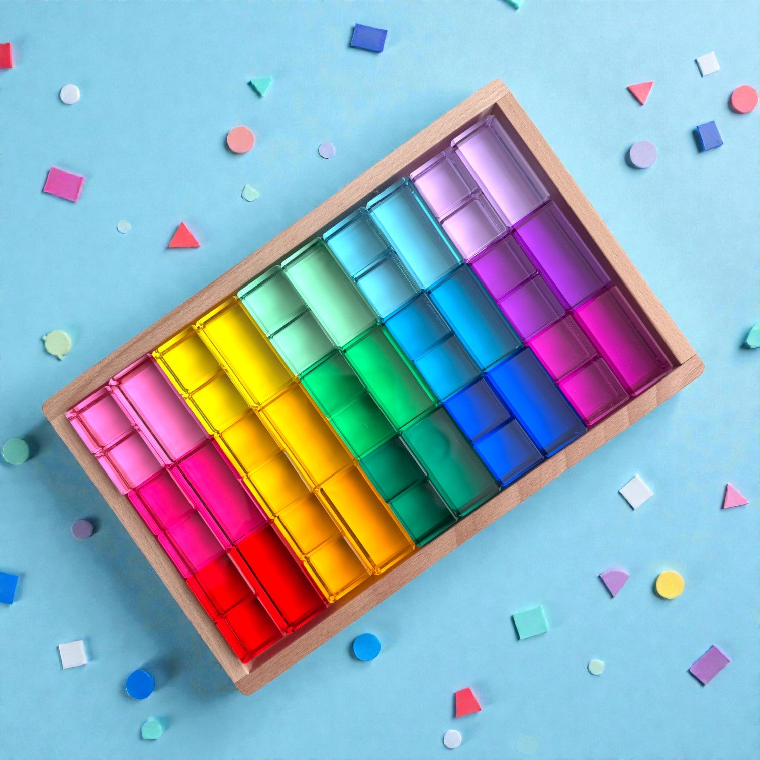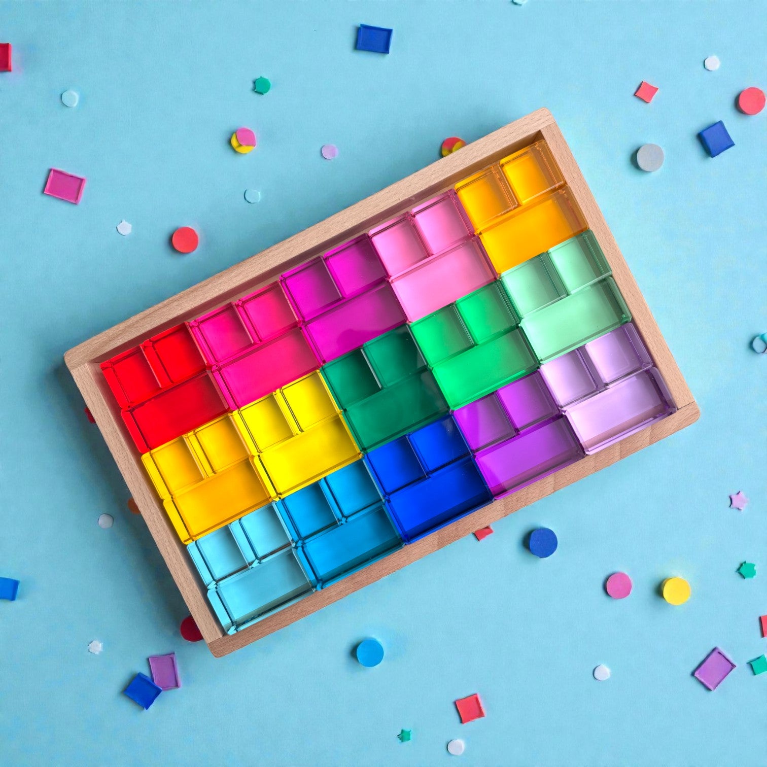Our High Transparency 15 Color Crystal Clear Acrylic Block Set is designed for families and educators who appreciate both beauty and substance in open ended play materials.